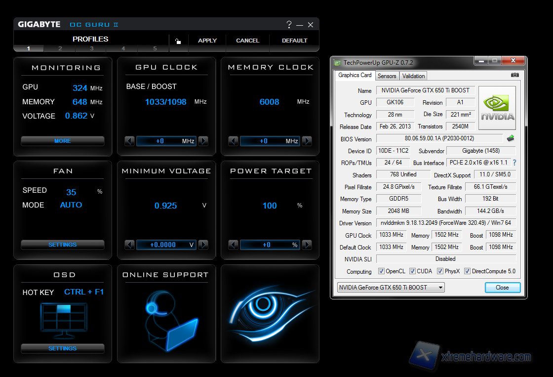 La GTX 650Ti Boost prodotta da GIGABYTE, pur non essendo una scheda pensata per video giocatori incalliti e per overclockers che spremono fino all'ultimo MHz, abbiamo deciso di metterla sotto stress. Per fare ciò abbiamo dovuto aspettare l'ultima versione del noto tool Oc Guru II di GIGABYTE, disponibile sulla propria pagina di download. Siamo riusciti a portare la VGA a frequenze decisamente interessanti.